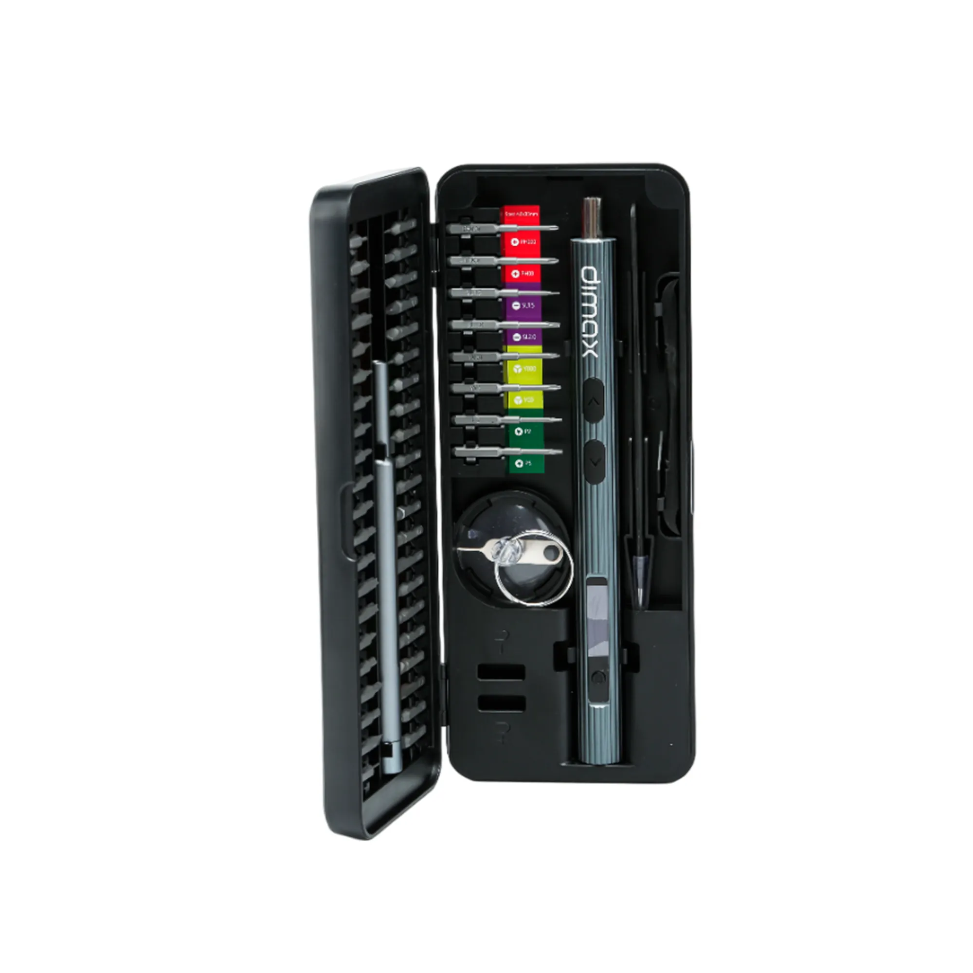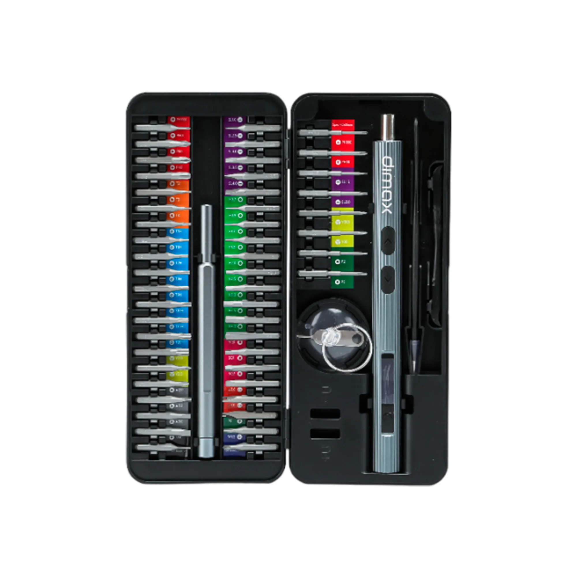 DESTORNILLADORES ELÉCTRICOS 58 EN 1, ESTUCHE DE ABS+MANGO DE ALUMINIO+PUNTAS S2, VOLTAJE 3,7V, BATERIA 500MAH, CON PANTALLA, VELOCIDAD 200RPM, PESO: 428GR.