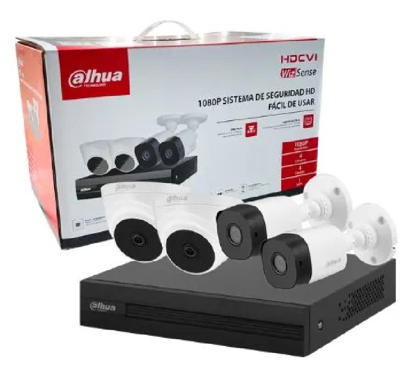 KIT DAHUA 4 CAMARAS PLASTICAS INCLUYE XVR1B04-I + 2 CAMARAS BALA 2MP + 2 CAMARAS DOMO 2MP +1 FUENTE + SPLITTER P/4 CAMARAS + 4 CABLES PATCH CORD BNC 18MTS