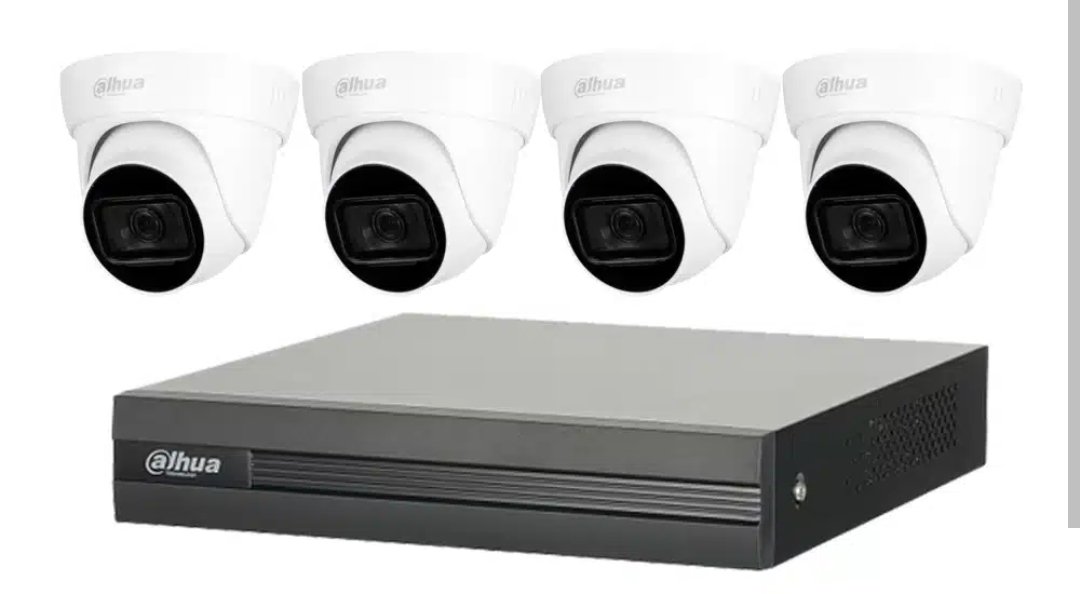 Grabador 720P XVR1B04-I(V2.0) Dahua + 2 Cámaras plásticas domo 1MP Dahua + 2 Cámaras metalicas domo 1MP Dahua + 4 Balums + 4 fuentes independientes de 1A + 4 plugs hembras + 4 plugs machos + 1 una regleta para conexión